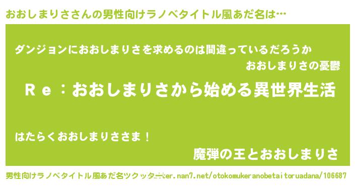 | 意味不明あだ名 | 『自称おおしまりさ』 |