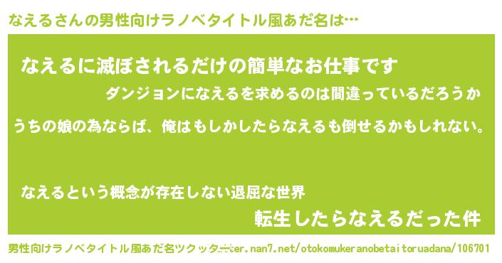 | 女子向けラノベタイトル風あだ名 | 『なえるの婚約者』『なえるは平凡を望む』 |