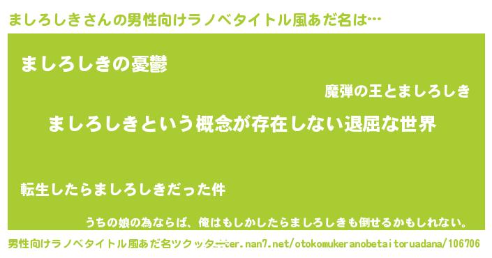 | 胡散臭い通販商品みたいなあだ名 | 『絶対に幸福をもたらす健康食品…その名も「ましろしき」』 |
