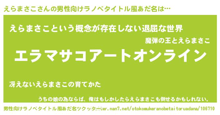 | 女子向けラノベタイトル風あだ名 | 『誰かこのえらまさこを説明してください! ~契約から始まるウェディング~』 |