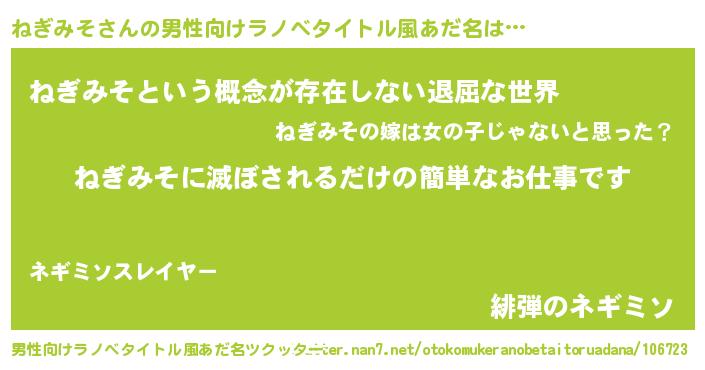 | 女子向けラノベタイトル風あだ名 | 『横柄ねぎみそと宰相陛下』 |