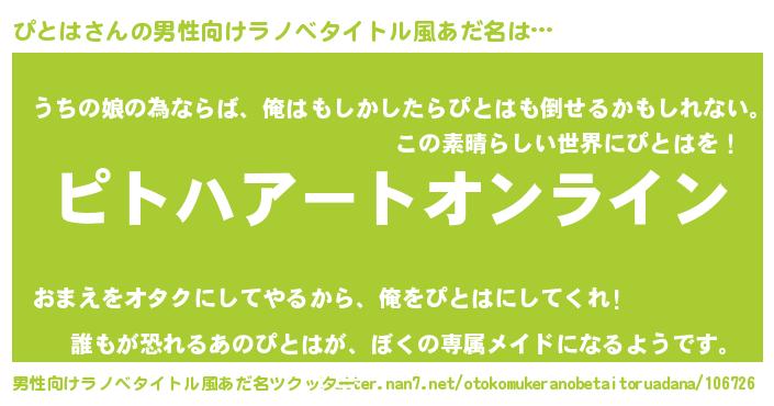 | 胡散臭い通販商品みたいなあだ名 | 『億万長者になれる霊験あらたかなお札…その名も「ぴとは」』 |