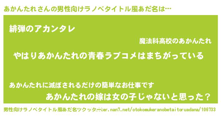 | 女子向けラノベタイトル風あだ名 | 『あかんたれ伯爵の花嫁』 |