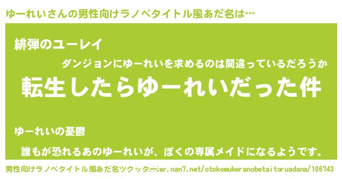 | 女子向けラノベタイトル風あだ名 | 『ゆーれいの玉の輿計画!』 |
