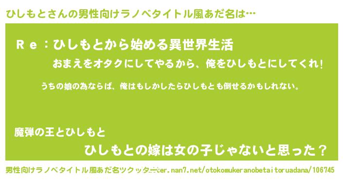 | ファンタジー風あだ名 | 『エターナルヒシモトー』『ゼヒシトゥ』 |