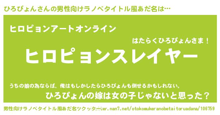 | ヘコむあだ名 | 『ひろにゅー』『ひろぷりん』 |