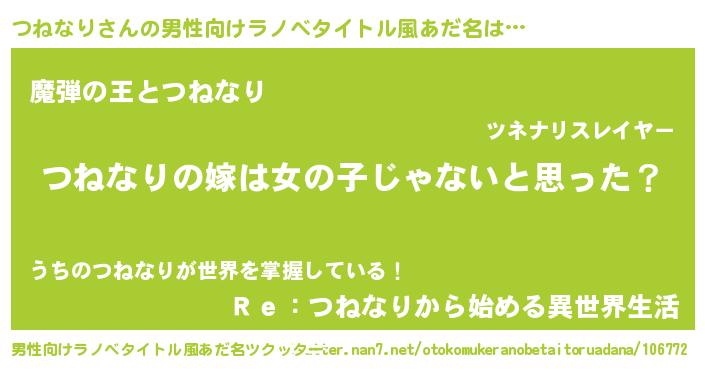 | 女子向けラノベタイトル風あだ名 | 『つねなり様がみてる』『闇のつねなり』 |