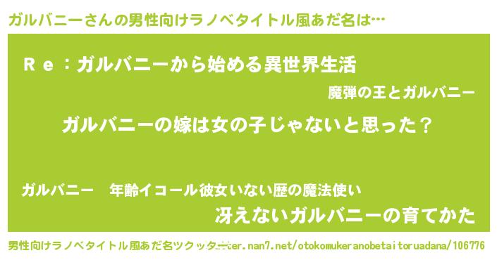 | 女子向けラノベタイトル風あだ名 | 『ガルバニー様がみてる』 |