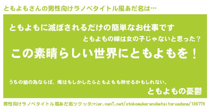 | 意味不明あだ名 | 『住所不定無職ともよも(81歳)』 |