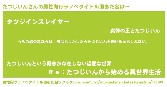 | 意味不明あだ名 | 『たつじいんフォーエバー』 |