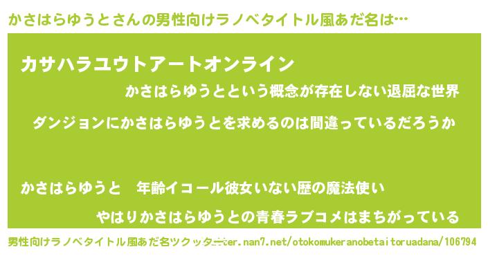 | 欧米人風あだ名 | 『ウサインかさはらゆうと』 |