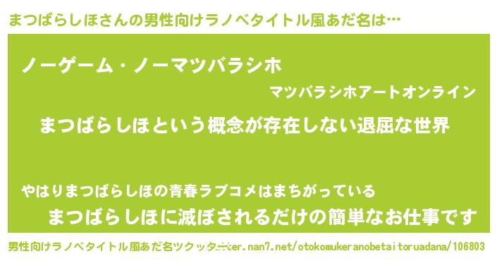 | 女子向けラノベタイトル風あだ名 | 『異世界で失敗しない100のまつばらしほ』 |