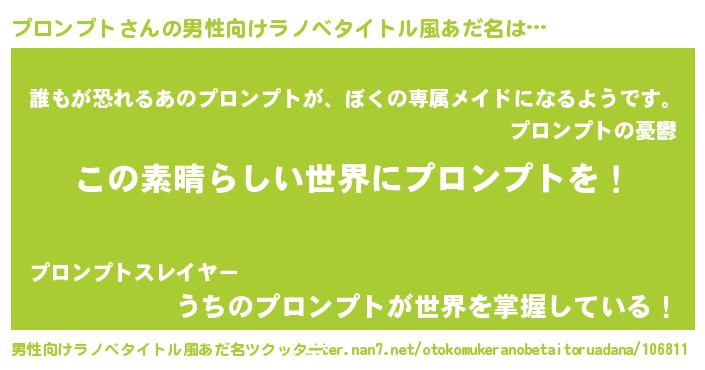 | 意味不明あだ名 | 『住所不定無職プロンプト(1歳)』 |