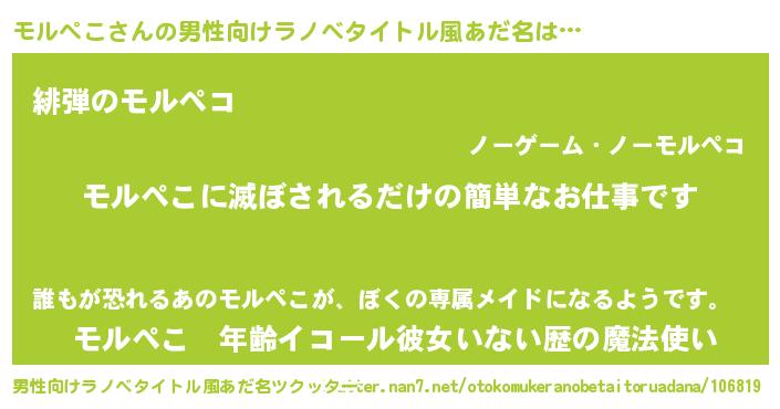 | ヘコむあだ名 | 『モルペこ(笑)』『モルっふぃ~』 |