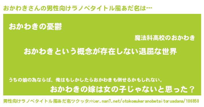 | ヘコむあだ名 | 『おかわき(小並感)』『おかふぇ~』 |