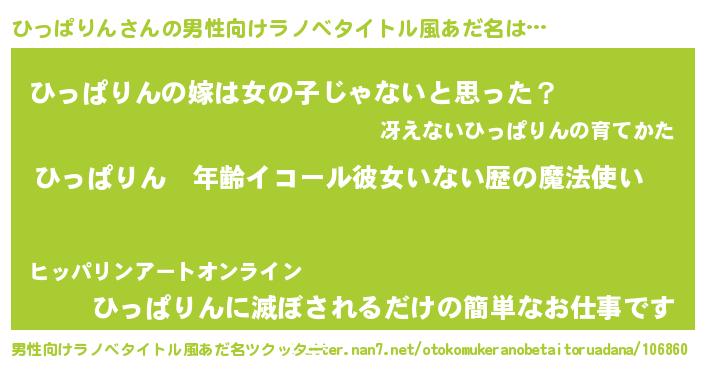 | 女子向けラノベタイトル風あだ名 | 『ひっぱりんの玉の輿計画!』 |