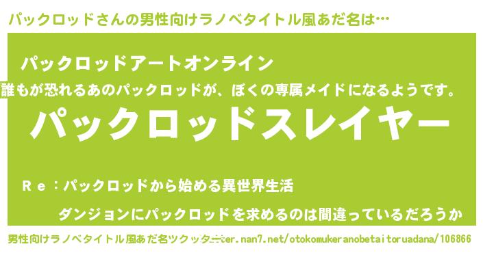 | 胡散臭い通販商品みたいなあだ名 | 『必ず成功するブレスレット…その名も「パックロッド」』 |