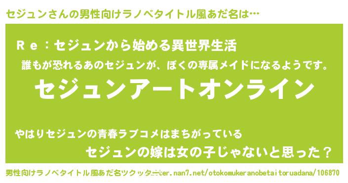 | 女子向けラノベタイトル風あだ名 | 『セジュン姫と円卓の騎士』 |