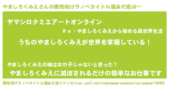 | 胡散臭い通販商品みたいなあだ名 | 『億万長者になれる水晶球…その名も「やましろくみえ」』 |