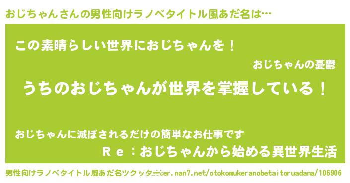 | 女子向けラノベタイトル風あだ名 | 『男装おじちゃんの憂鬱な任務』 |