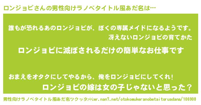 | 胡散臭い通販商品みたいなあだ名 | 『来世でも幸せになれる健康食品…その名も「ロンジョビ」』 |