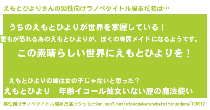 | 意味不明あだ名 | 『住所不定無職えもとひより(9歳)』 |