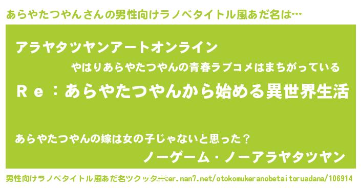 | 意味不明あだ名 | 『自称あらやたつやん』 |