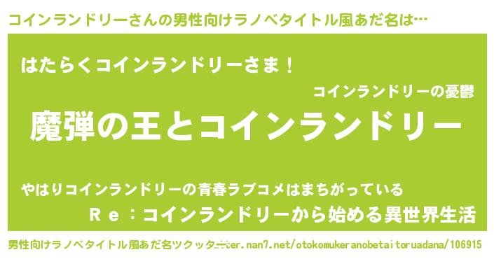 | 女子向けラノベタイトル風あだ名 | 『コインランドリーが死なない童話 林檎のコインランドリーの診療簿』 |