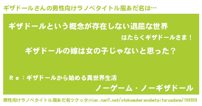 | 意味不明あだ名 | 『とにかく怪しいギザドール』 |