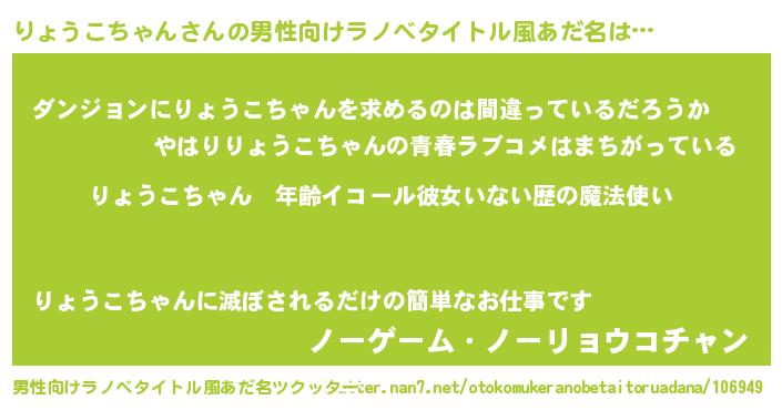 | 胡散臭い通販商品みたいなあだ名 | 『全米が絶賛したサプリメント…その名も「りょうこちゃん」』 |