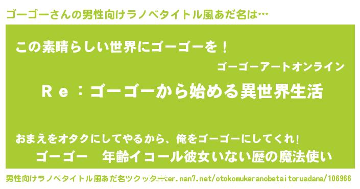| 女子向けラノベタイトル風あだ名 | 『ゴーゴーストレイドッグス』 |