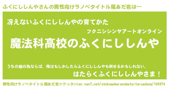 | 意味不明あだ名 | 『自称ふくにししんや』 |