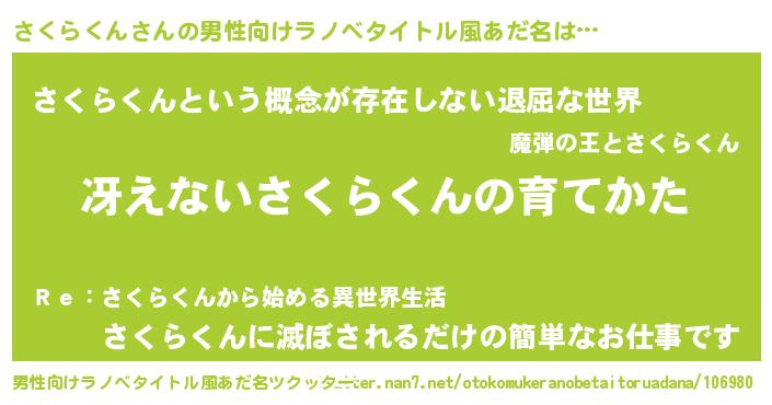| 意味不明あだ名 | 『永久保存さくらくん』『自称さくらくん』 |