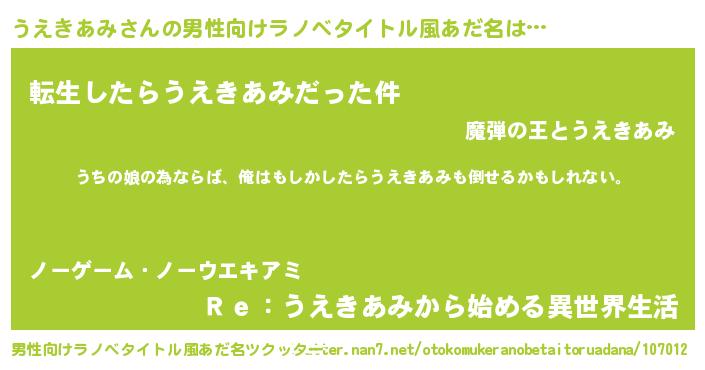 | 女子向けラノベタイトル風あだ名 | 『うえきあみの婚約者』『闇のうえきあみ』 |