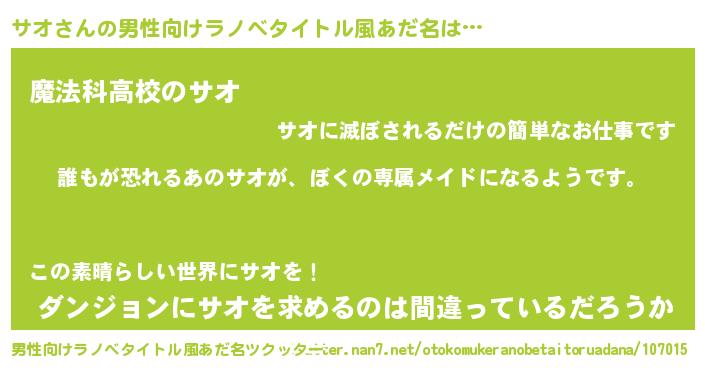 | ファンタジー風あだ名 | 『サオディッシュ』『ゼサオトゥ』 |