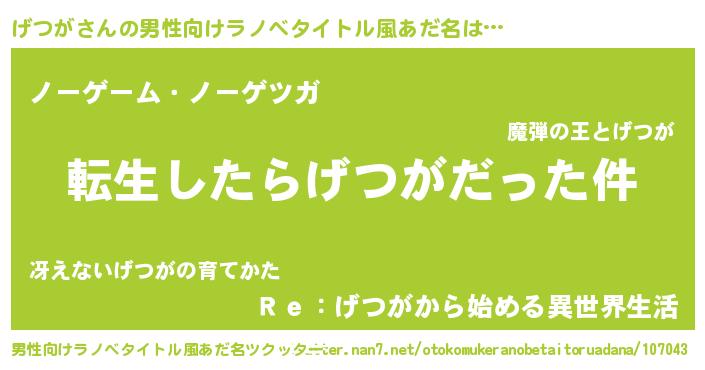 | 女子向けラノベタイトル風あだ名 | 『げつがの玉の輿計画!』『闇のげつが』 |