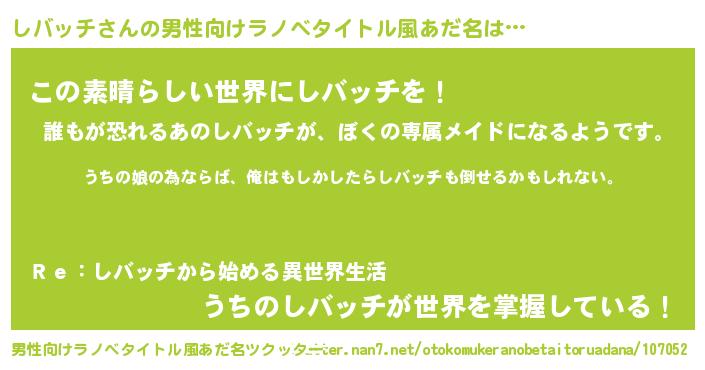 | 女子向けラノベタイトル風あだ名 | 『しバッチの婚約者』『闇のしバッチ』 |