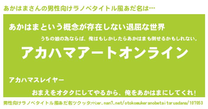 | 胡散臭い通販商品みたいなあだ名 | 『モテモテ間違いなし霊験あらたかなお札…その名も「あかはま」』 |