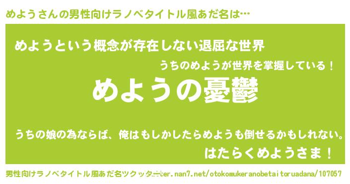 | 意味不明あだ名 | 『ペロリンめよう』『永久保存めよう』 |