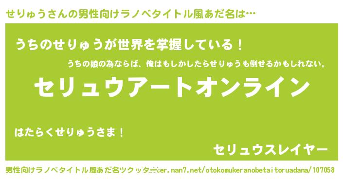 | 意味不明あだ名 | 『ペロリンせりゅう』『自称せりゅう』 |