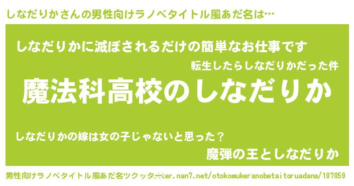 | 意味不明あだ名 | 『自称しなだりか』『ペロリンしなだりか』 |