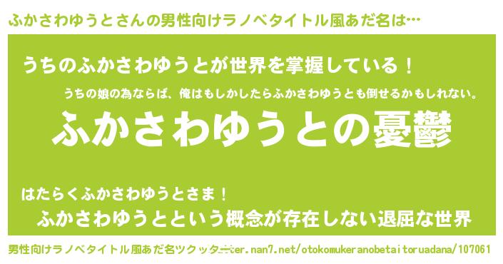 | 胡散臭い通販商品みたいなあだ名 | 『モテモテ間違いなし霊験あらたかなお札…その名も「ふかさわゆうと」』 |