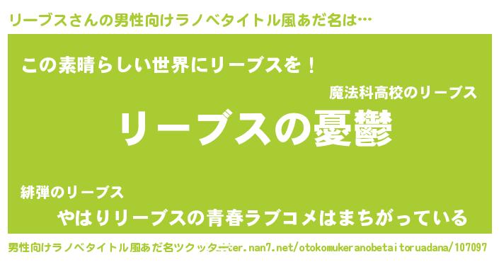 | 胡散臭い通販商品みたいなあだ名 | 『モテモテ間違いなしブレスレット…その名も「リーブス」』 |