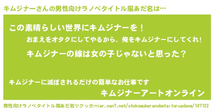 | 女子向けラノベタイトル風あだ名 | 『キムジナー様がみてる』 |