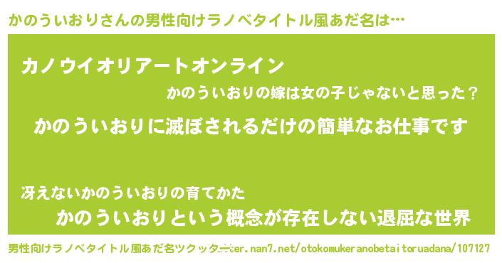 | 胡散臭い通販商品みたいなあだ名 | 『モテモテ間違いなしブレスレット…その名も「かのういおり」』 |