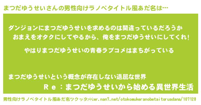 | 女子向けラノベタイトル風あだ名 | 『まつだゆうせい伯爵の花嫁』 |