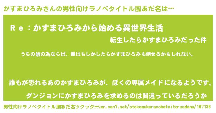 | 肩書あだ名 | 『かすまひろみ総理大臣』 |