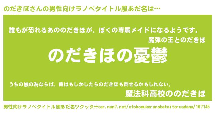 | 女子向けラノベタイトル風あだ名 | 『(仮)のだきほのやんごとなき事情』 |