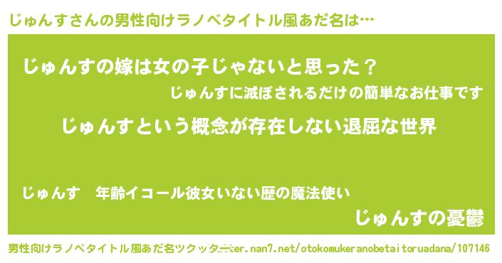 | 胡散臭い通販商品みたいなあだ名 | 『来世でも幸せになれる健康食品…その名も「じゅんす」』 |