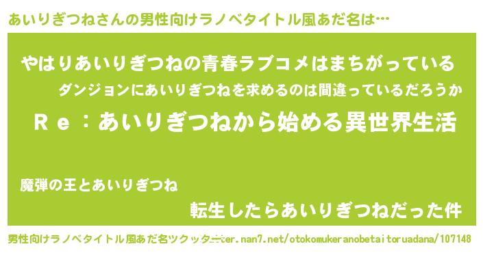 | 意味不明あだ名 | 『自称あいりぎつね』 |